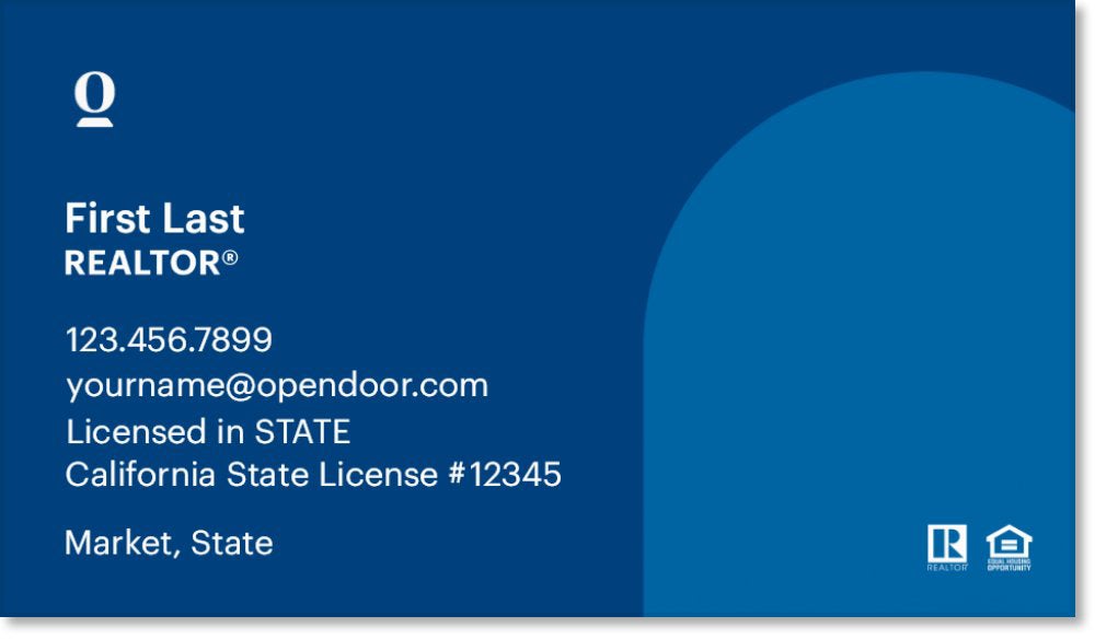 Opendoor Brokerage Business Card - Licensed in Multiple States (California)